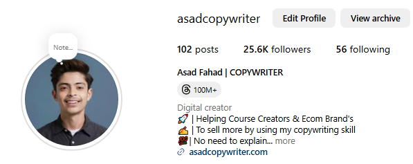 - Username and Handle: A username that is as simple and has your keyword mentioned in it will look good. For example, if my name is “Asad,” then my keyword is “Copywriter,” then this name becomes “Asad Copywriter.”